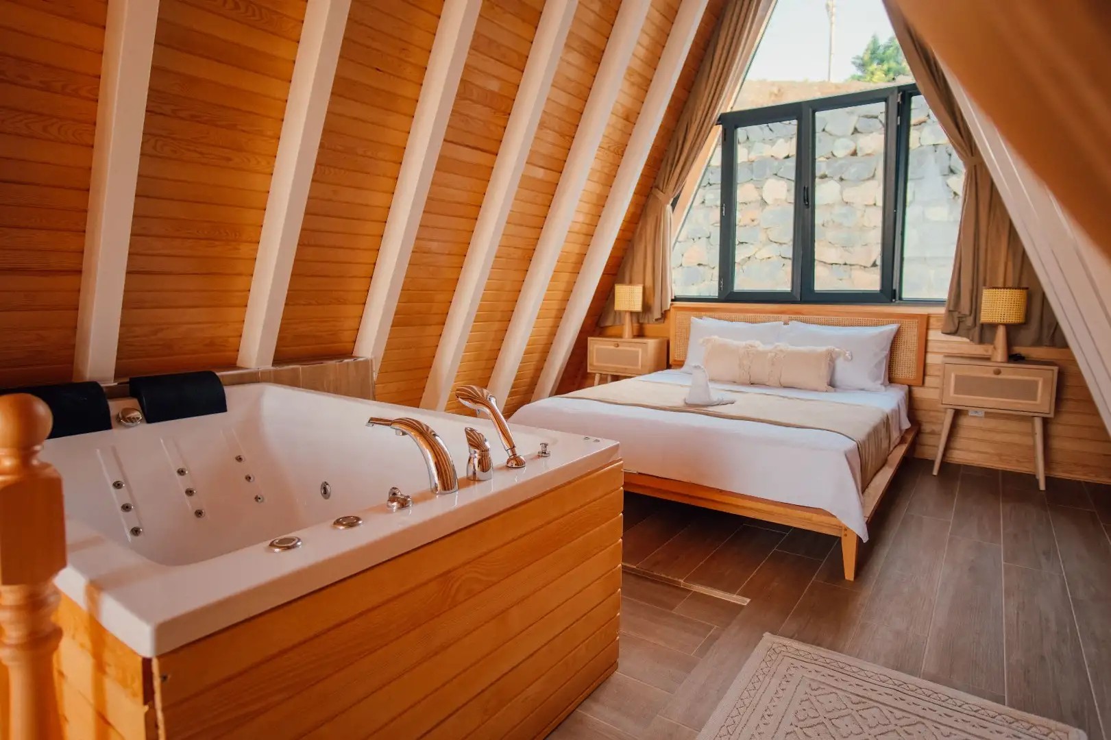 1.Yatak Odası (Üst Kat): 1 çift kişilik yatak, jakuzi, klima, elbise dolabı, komodin bulunmaktadır.