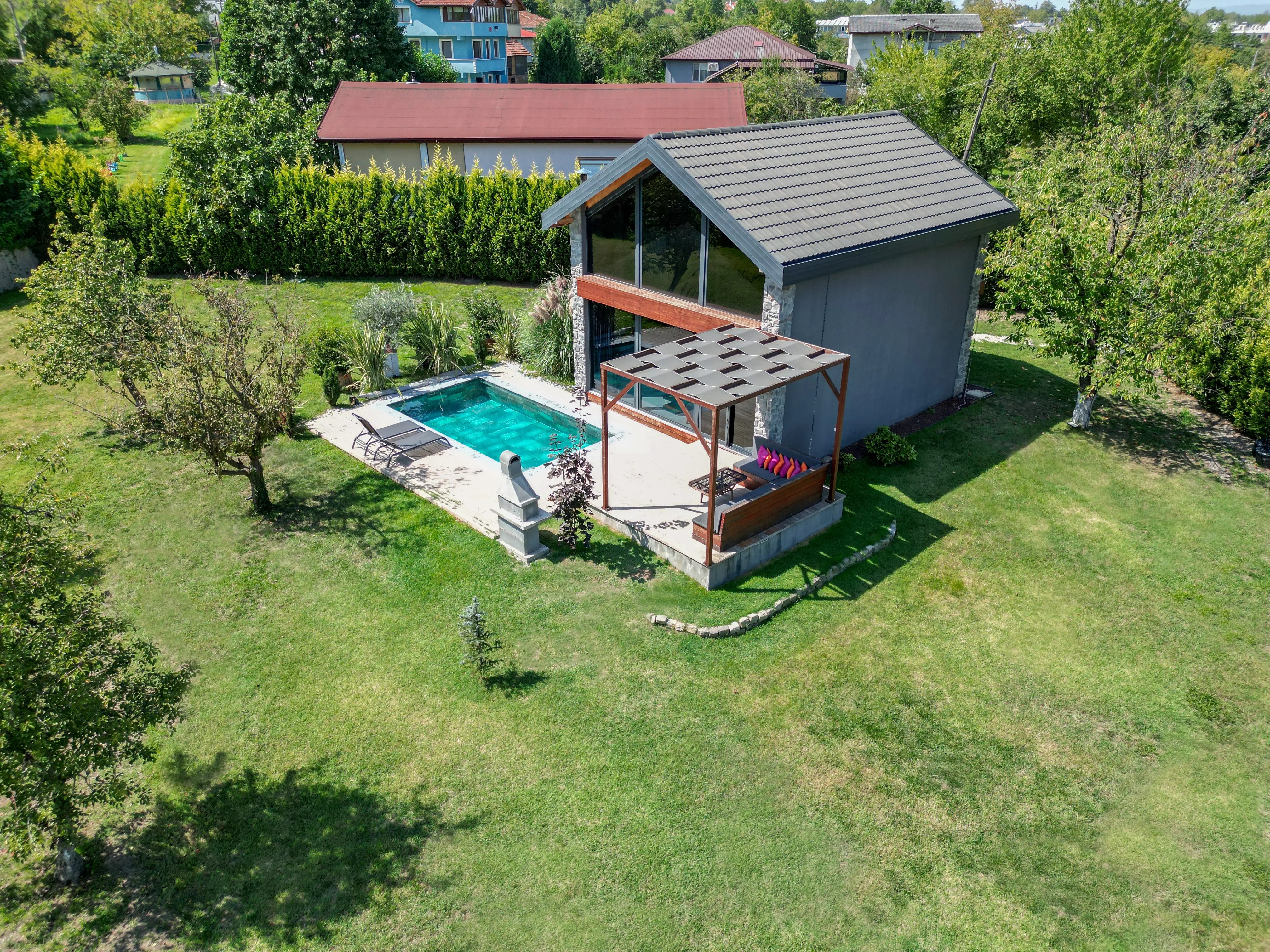 Bahçe: Özel Isıtmalı yüzme havuzu, şezlong, ateş kazanı, salıncak, şemsiye, barbekü, yemek masası bulunmaktadır.