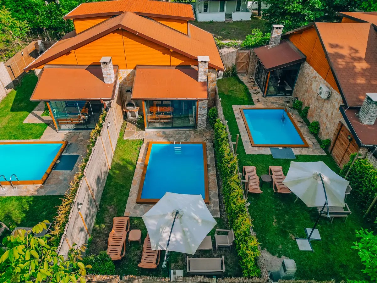 Süperior Dubleks Bungalov Havuzlu : 3 adet ısıtmalı havuzlu bungalov bulunmaktadır. Max. 4 yetişkin konaklayabilmektedir. Çocuklu aileler 5 kişi konaklayabilmektedir. 5. çocuk salondaki koltukta konaklayabilmektedir.