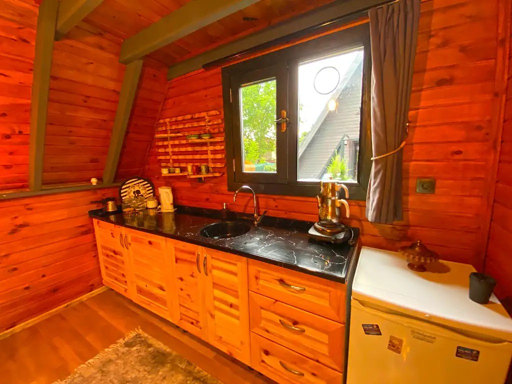 Mutfak : Kettle , elektrikli ocak, kahve makinesi, mini buzdolabı ve diğer mutfak araç gereçleri bulunmaktadır.