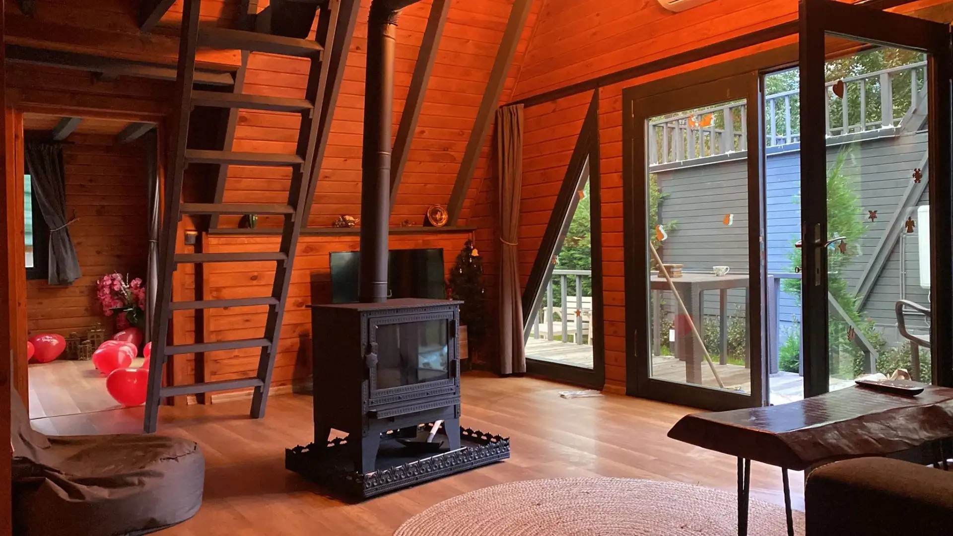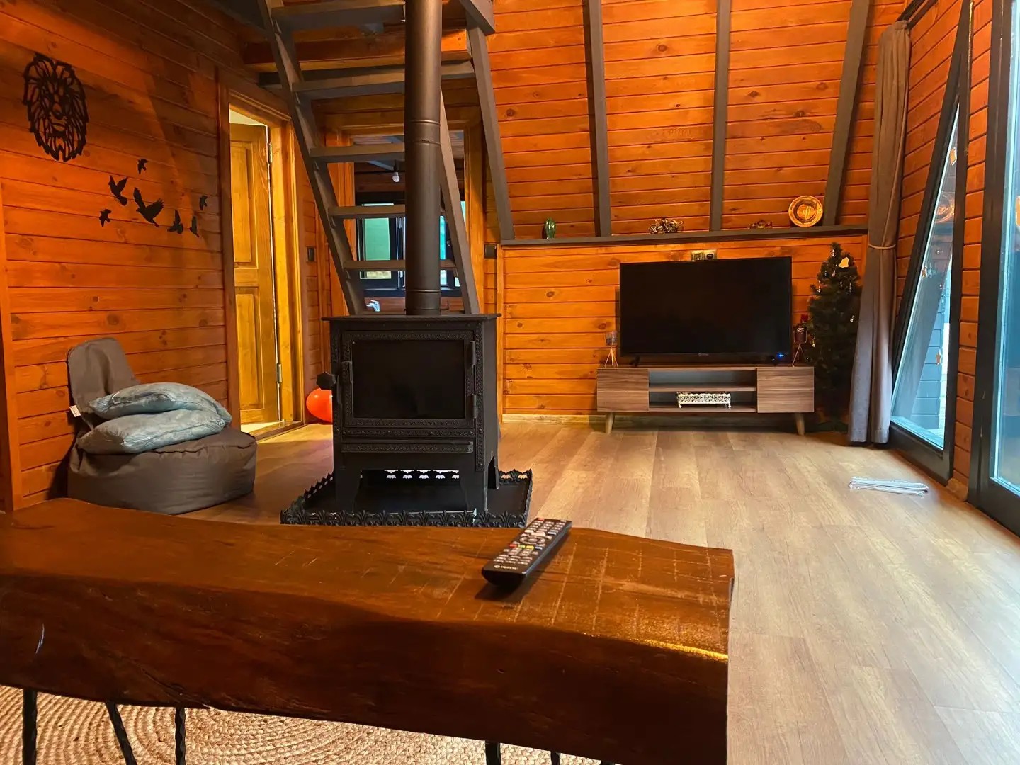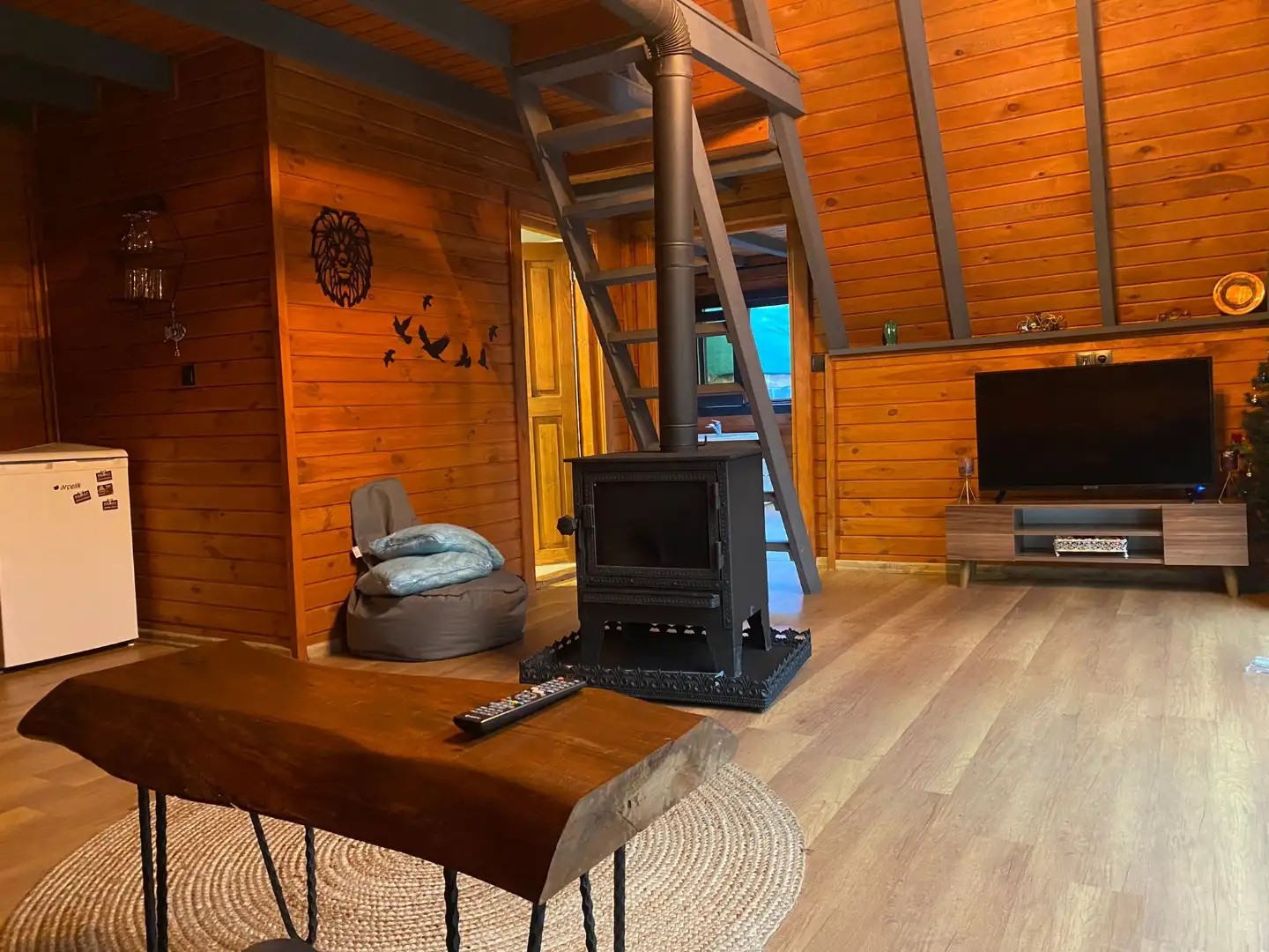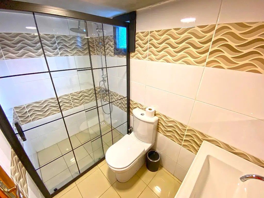 Salon : Rahat ve şık açılabilir koltuk, şömine soba, tv , klima ve wc&banyo bulunmaktadır.