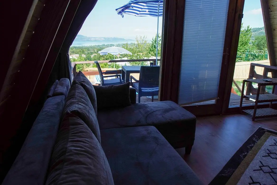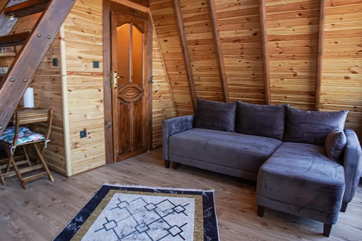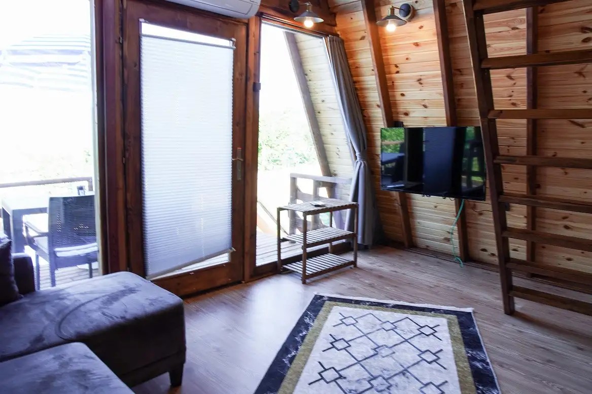 Yatak Odaları :1.Yatak Odası (Asma kat) : Çift kişilik yatak, elbise askılığı Salon : Açılabilir L koltuk, tv, klima, wc&banyo bulunmaktadır.