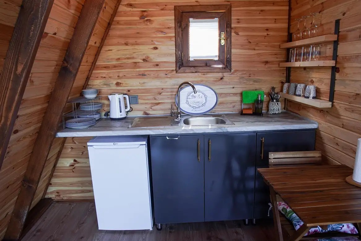 Mutfak : Mini buzdolabı,kahve makinesi, kettle ve diğer mutfak araç gereçleri bulunmaktadır. Ocak bulunmamaktadır.