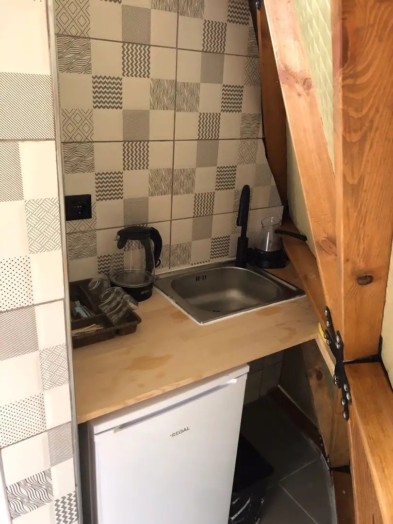 Mutfak: Mini buzdolabı, kettle, çaycı, kahve
