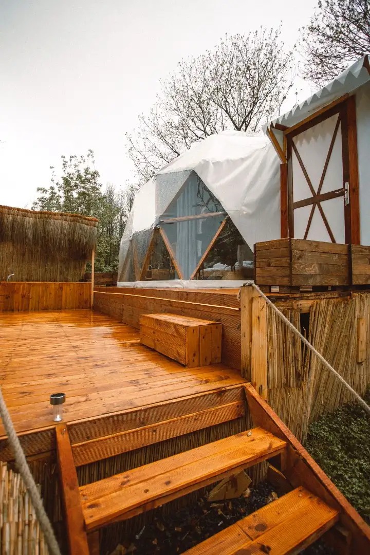 eşyalarıyla zevkle döşenmiştir. Tesis bünyesinde 2 adet jakuzili glamping